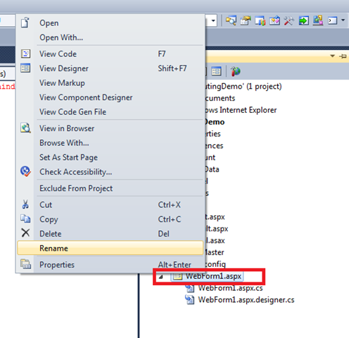 c. Right click on WebForm.aspx and rename this to AllProduct.aspx
