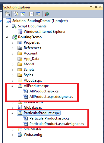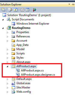 After renaming the name, you will have AllProduct.aspx in solution explorer.