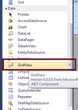 b. Drag GridView from Data tab of tool box and put it on AllProduct.aspx