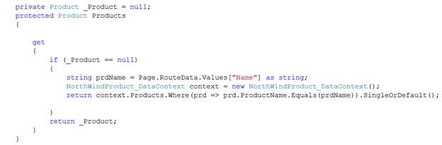 2. Crated a protected property. In getter, I am checking for data member. If it is null, then I am creating instance of NorthWindProduct and fetching product with the given name