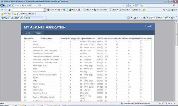 1. Select all Products (AllProduct.aspx) : This page will display all the Products