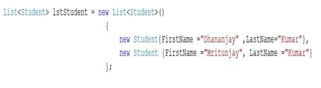new Student{FirstName ="Dhananjay" ,LastName="Kumar"},