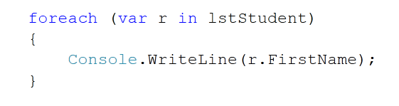 In retrieving implicit type local variable is being used to fetch the different instance of the student in list of student
