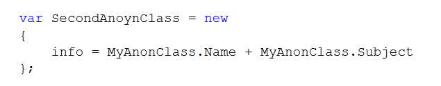 info = MyAnonClass.Name + MyAnonClass.Subject