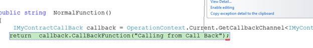 And after consumption of service try to run the client, you will get an exception while trying to call the operation contract from call back function.