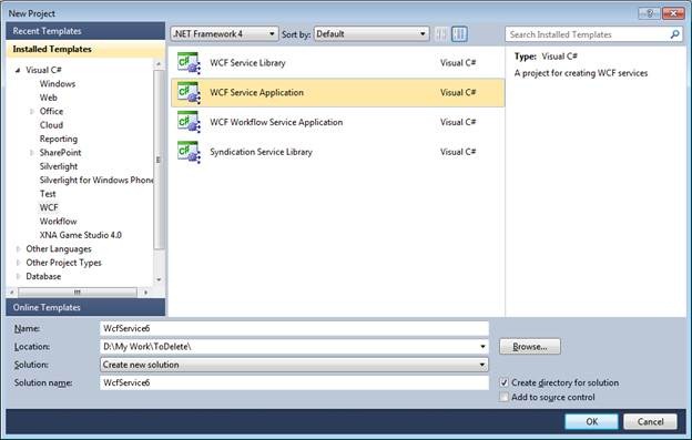 Create WCF service. Open visual studio select new project and then from WCF tab select WCF Service application to create a new WCF service.