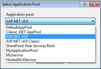Now click on select and choose ASP.Net v4.0 from the drop down.