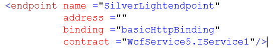 Since, we are creating WCF Service for SilverLight client, so we need to modify the endpoint of the service with basicHttpBinding.