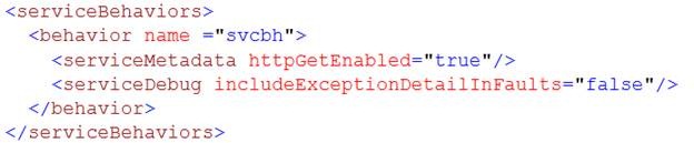 <serviceDebug includeExceptionDetailInFaults="false"/>