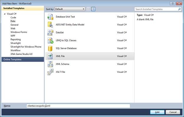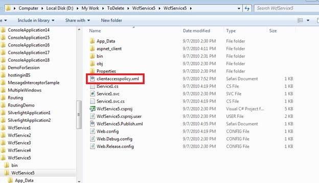 So, finally now you will have a ClientAccesspolicy.xml file in WCF project