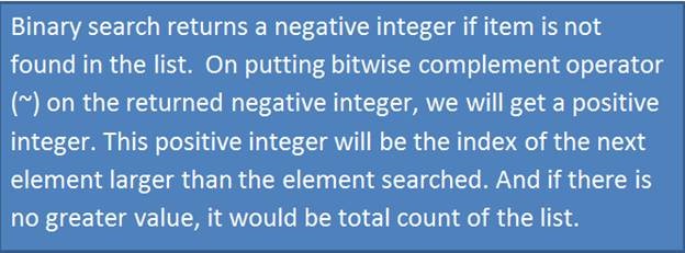 So first we need to perform the binary search and then find the index of the next top element by negating the integer returned by the Binary search.