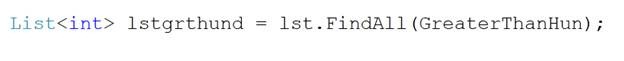 List<int> lstgrthund = lst.FindAll(GreaterThanHun);