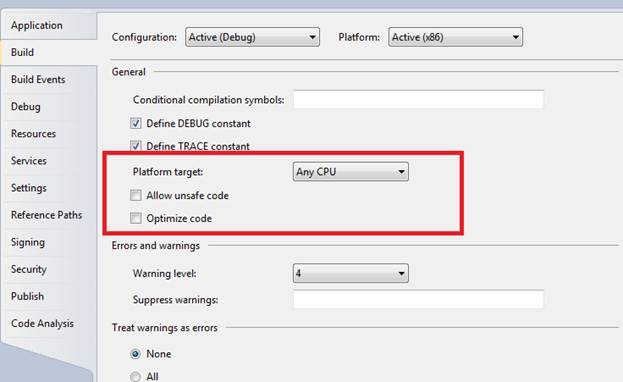 Click on the Build tab and change Platform Target to Any CPU.