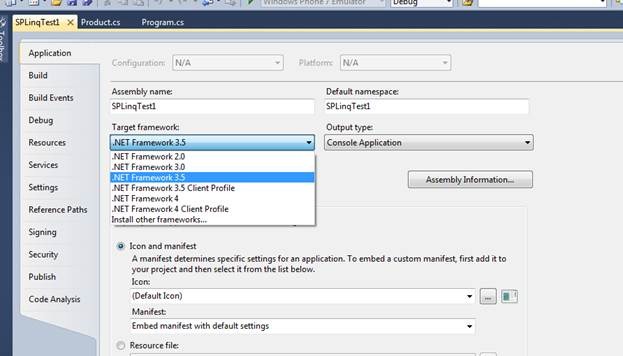 Now console application project is ready for the CRUD operation on SharePoint 2010 list using SPLinq