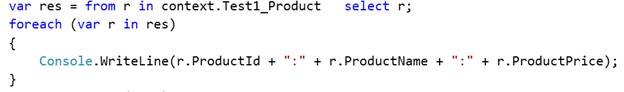 Console.WriteLine(r.ProductId + ":" + r.ProductName + ":" + r.ProductPrice);