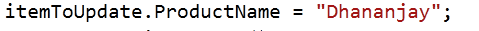 itemToUpdate.ProductName = "Dhananjay";