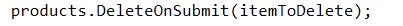 products.DeleteOnSubmit(itemToDelete);