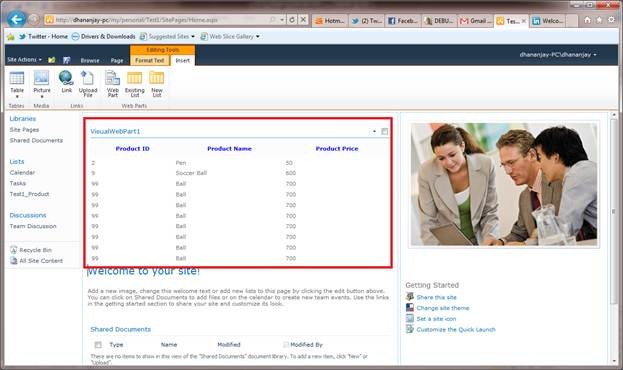 After selecting the WebPart click on Add button. And after clicking button on the home page you will get the custom WebPart populated with Test_Product list items.