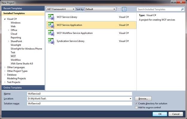 Create a new project as WCF Service application type.