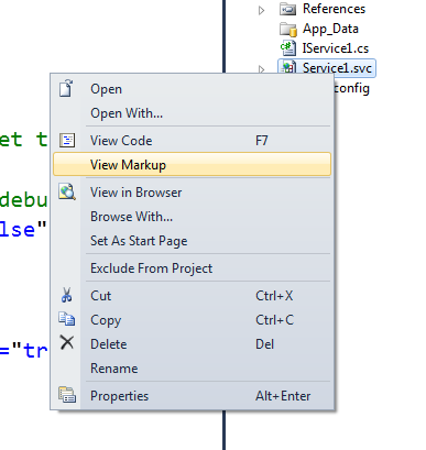 Right click on Service.svc and open View markup.