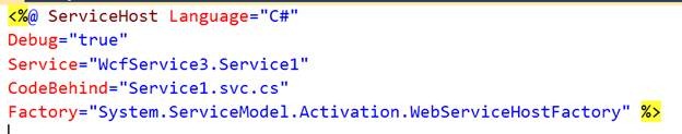 Factory=”System.ServiceModel.Activation.WebServiceHostFactory”