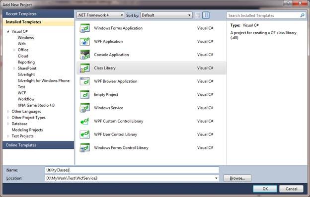 Add a new project as of type class library and give it name UtilityClasses.