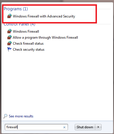 You will able to see on top under Program tab , Windows Firewall with advanced security