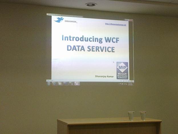 I presented on the topic Introducing WCF Data Service in Pune Dev Con 19th December 2010. I got a very good crowd audience. Audience was very interactive and there were at least 50 questions from the audience in 1 hr. session. I rate the audience as one of the best audience I presented so far. I started with basic REST service and moved to consuming WCF Data Service to Windows7 phone.