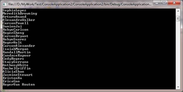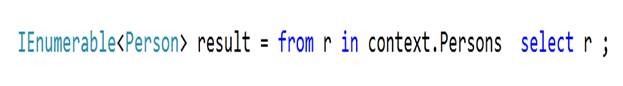 In the below example, we are querying in collection of string so we know the output would be collection of string, so we are using here IEnumerable with string.