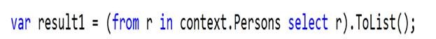 var result1 = (from r in context.Persons select r).ToList();