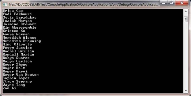 Console.WriteLine(r.FirstName + " " + r.LastName);