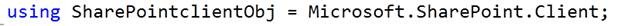 using SharePointclientObj = Microsoft.SharePoint.Client;