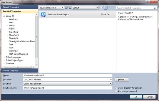 I thought to start learning Windows Azure. I installed Azure SDK and created a project by choosing Windows Azure project template from cloud tab and creating a Web Role.