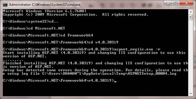 Second suggestion was the open the command prompt and run aspnet_regiis.exe –r. I tried and again I was not lucky.