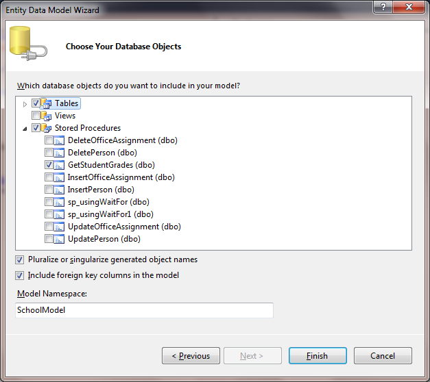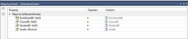 Stored Procedure we are selecting is GetStudentGrades and it is returning one or more entities of StudentGrade.