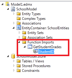 You can see in model browser that GetStudentGrades has been listed in Function Imports section and it is having one input parameter StudentD.