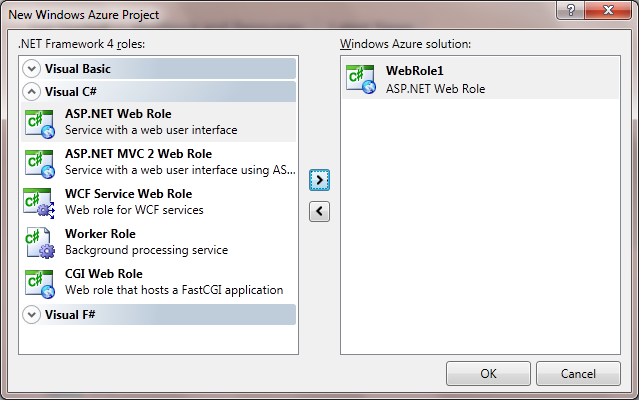 3. Select ASP.Net Web Role and click on Right arrow key.