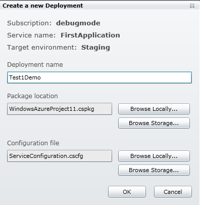 We provided Deployment name as Test1Demo. Once browsing to package and configuration file Click on Ok.