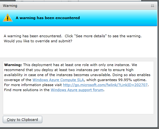 Ignore warning and click on Yes. If you want you can increase count of Web Role instance.