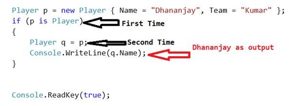 So , if we are running below code , we will get output as true because ofccouse p is a Player.