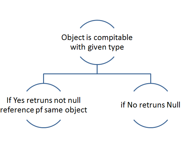 as operator find type compatibility, If an object is not compatible with given type then as operator returns null.