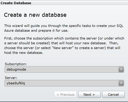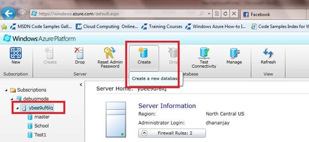 Let us have a walkthrough on various operations we can perform on Database option of new Windows Azure portal.