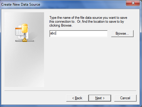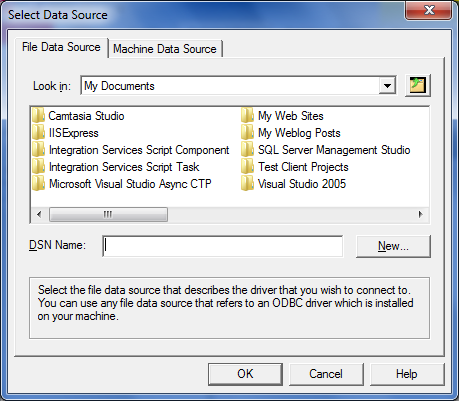 6. Click on New and you will pop up with a new panel. To connect with SQL Azure select SQL Server Native Client 10.0