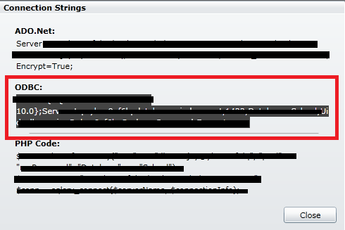 7. Click on Advanced option. Here you need to give ODBC connection string to SQL Azure Database. Login to SQL Azure portal and copy paste ODBC connection string here