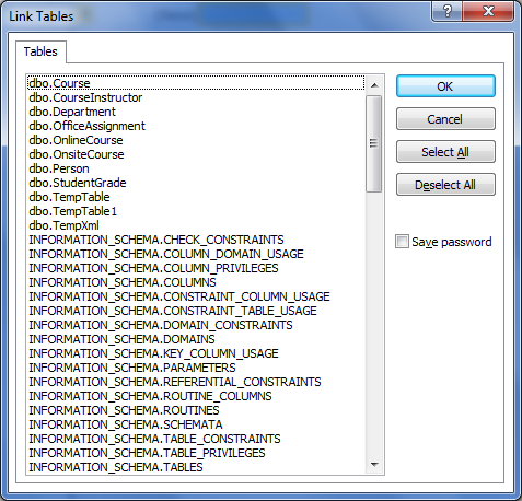 10. Oh My God and here you are, you have all the tables from SQL Azure Database listed to select in Microsoft Access.