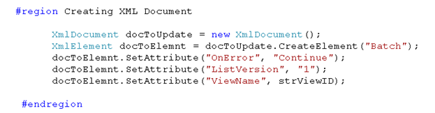 XmlElement docToElemnt = docToUpdate.CreateElement("Batch");