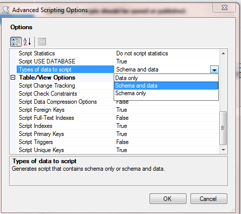 And in types of data to script, select Script and Data – both options.