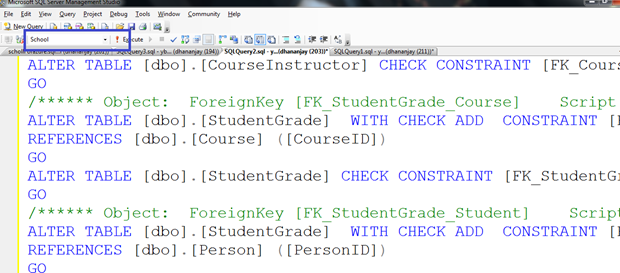 The first step is to create the database. We are going to use School database. Script of sample School Database copy from here