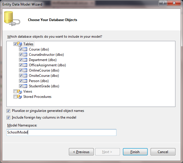 5. Select tables, views and stored procedure from the database you want to make as the part of your data model.