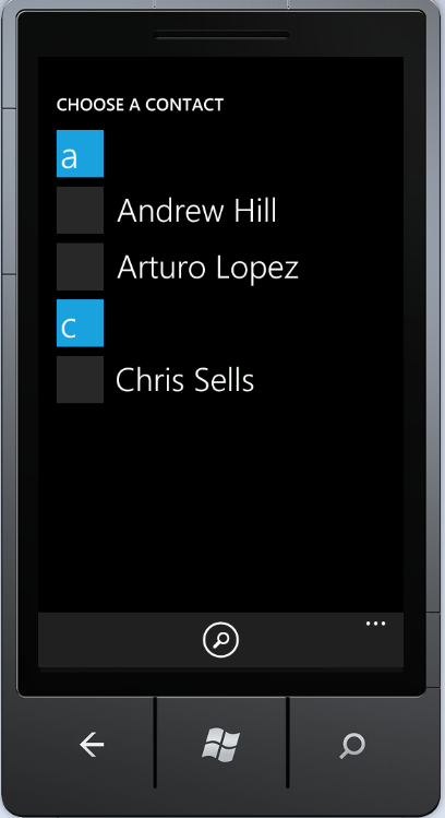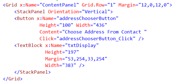 On click event of button, we will show the contact using addressChooserTask.Show